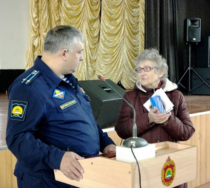 В ответ на гостеприимный прием председатель правления АРО СПР Е.П. Самбур вручила памятный подарок – плод кропотливого труда членов Амурского Союза пенсионеров – диск с записью имен более чем 9000 тружениках тыла, награжденных медалью «За доблестный труд в годы Великой Отечественной воны 1941-1945гг», живших в Амурской области и совершавших свой повседневный, но не менее героический труд на благо Победы, как и ветераны-воины участники ВОВ.