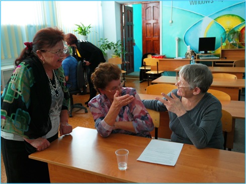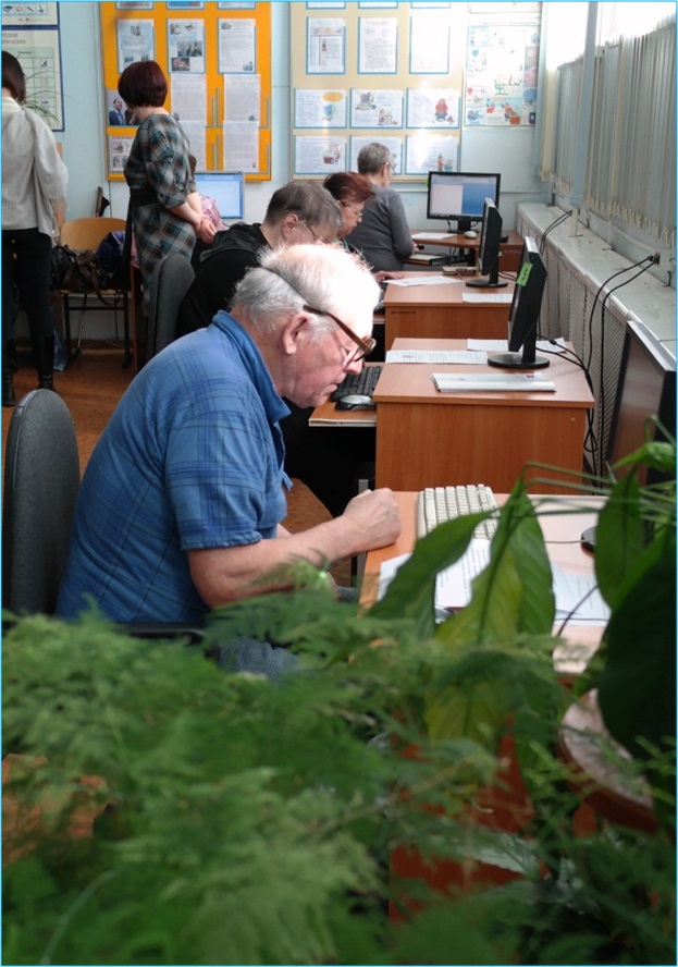 Курс обучения пенсионеров составляет 12 часов. Пожилых студентов также помогает обучать Лариса Григорьевна. В этом учебном году они начали подготовку студентов для волонтерской практики.