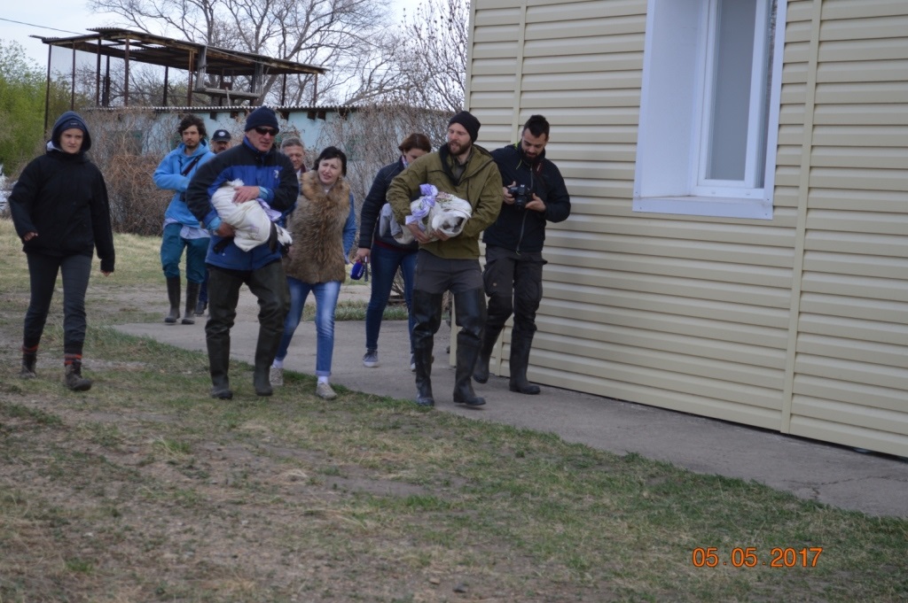 Их унесли в луга, метров 400 от усадьбы. Там их распеленали – журавлики расправили пёрышки, взмахнули крыльями. Один даже взлетел, но не улетел. Стали спокойно осваиваться на новом месте, не разбежались, так и держались вместе. «А это значит, что всё прошло успешно, без стресса» — сказал В.А. Дугинцов, успокаивая вернувшегося С.М. Смиренского.