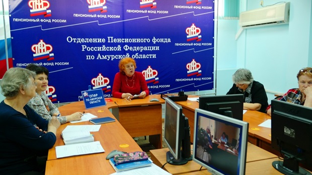 По традиции в начале мая на площадке Пенсионного фонда России по Амурской области по селекторной связи была проведена встреча руководителей Амурского отделения Союза пенсионеров России и местных организаций в Белогорске, Зее, Райчихинске, Свободном, Тынде, Шимановске, Архаре, Новобурейске, Завитинске, Ивановке, Константиновке, Магдагачах, Новокиевском Увале, Пояркове, Екатеринославке, Ромнах, Серышеве, Экимчане, Сковородине, Тамбовке.