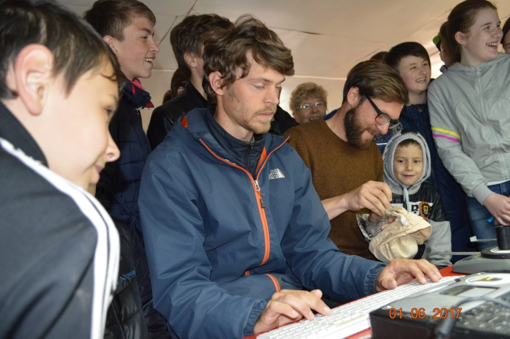 Дети радовались возможности понаблюдать за манипуляциями орнитологов при осмотре и кольцевании маленькой пеночки, а Илье Ивакову даже позволили погладить хвостик птички. Все данные о птахе заносят на компьютер и отправляют в Москву, специальный центр изучения мигрирующих птиц. Всё происходящее Илья Иванов записал на видеокамеру.