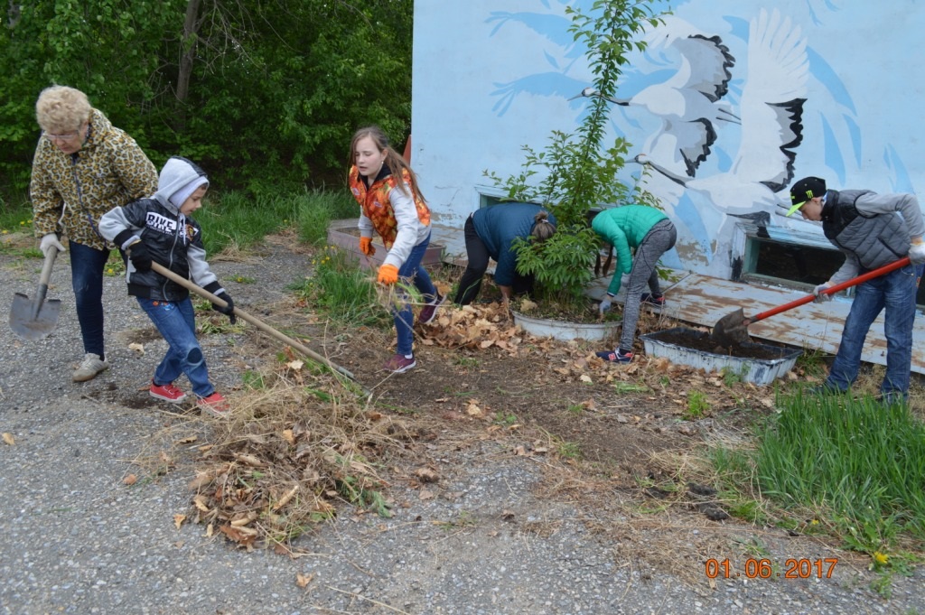 Затем все приехавшие в парк, посадили привезённые цветы на клумбах, пообедали на смотровой площадке с видом на водно-болотные угодья парка, где живут журавли, аисты, цапли и другие птицы и звери. Пили чай с пирогами от Гришина В.Е.