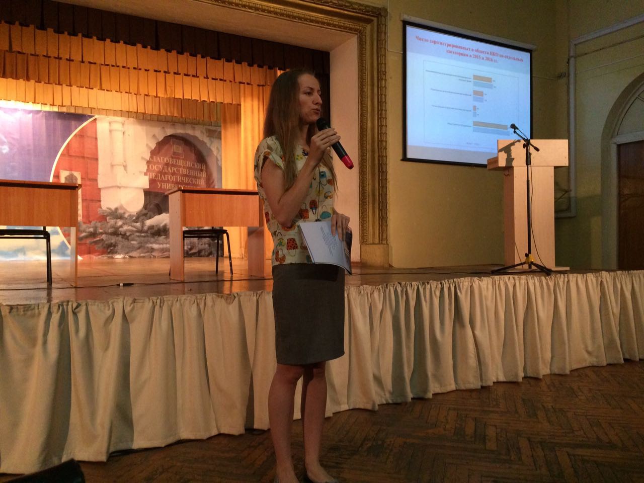 Первая половина дня была посвящена работе дискуссионных площадок. Член Общественной палаты Амурской области Екатерина Алексеевна Лунькова выступила в качестве модератора на площадке «Некоммерческие организации в муниципальном управлении». В рамках площадки обсуждались актуальные проблемы в развитии НКО, меры поддержки НКО в муниципальных образованиях, обсуждались принципы построения механизмов межсекторного социального партнерства в Амурской области. По итогам обсуждения, участники площадки выделили ключевые проблемы и предложения по укреплению сегмента НКО, адресованные уполномоченным органам власти области.