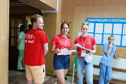 Сложности общения помогали преодолевать волонтеры — студенты БГПУ китаисты Валерий, Кристина и Настя.