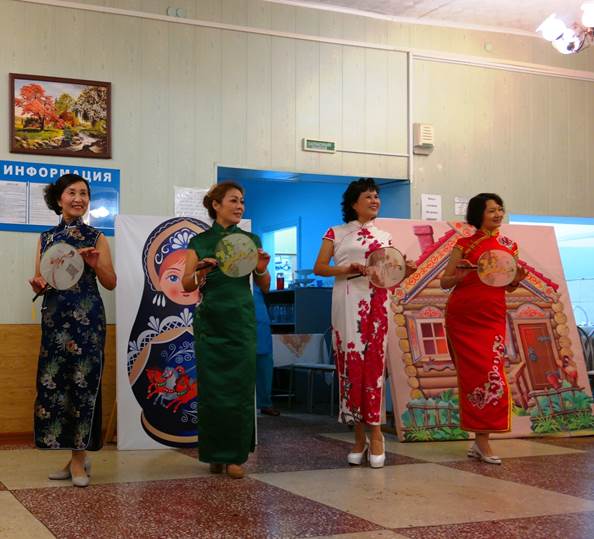 Гости из Китая представили амурским товарищам подготовленные концертные номера: народные песни и танцы, фрагмент пекинской оперы, игру на национальных музыкальных инструментах. Благовещенский фольклорный ансамбль «Сударушки» Союза Пенсионеров под руководством Козловой Л.Н. зажигал аудиторию народными песнями. Семейный ансамбль Чудаевых выступил ярко и зрелищно, лирично и слаженно спел квартет пансионата «Приозерья». Группа «Танцы для здоровья» продемонстрировали удивительную слаженность ансамбля.