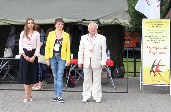 25 августа 2017 года в г. Благовещенске прошел Первый городской открытый фестиваль танцевально-оздоровительных клубов «Серебряный возраст». Организатором фестиваля выступила Благовещенская городская общественная организация «Ассоциация пожилых людей» (руководитель С.А.Утенбергенов, член Общественной палаты Амурской области).