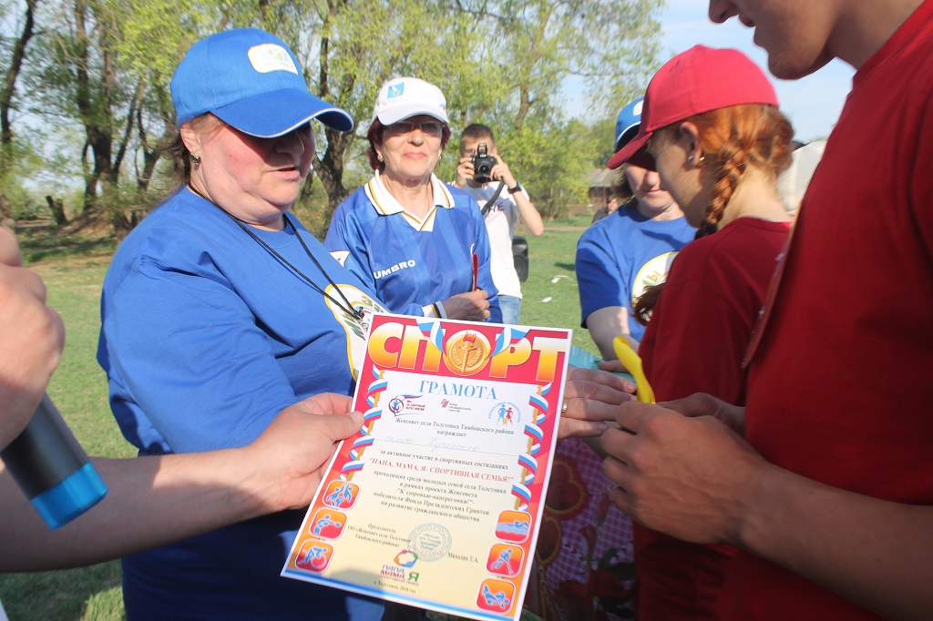 Команды награждены Почетными грамотами, кубками и медалями, наборами для настольного тенниса, приобретенными на средства Фонда Президентских грантов, семьи получили подарки от Женсовета села Толстовка, а также сладкие призы от Тамбовского районного Совета женщин, а все участники — отличный заряд бодрости и море положительных эмоций. Поздравляем победителей и участников!!! Все команды выступили достойно!