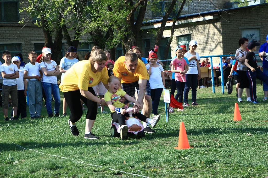 Конкурсы проходили друг за другом, командам были предложены занимательные, иногда очень непростые эстафеты с флагом, фитболом, спортсмены приняли участие в семейном баскетболе и поезде, бегали «по лужам» с зонтом, ползали на четвереньках, катались «на скорость» на детских машинках, соревновались на меткость — от избытка энтузиазма мячи порой улетали довольно далеко от намеченного курса. «Полоса препятствий» стала одной из самых захватывающих испытаний. Все этапы увлекательных соревнований проходили в напряженной борьбе. Папы демонстрировали силу и ловкость, мамы — смекалку и сплоченность, а малыши принесли в свои команды позитив и бодрость духа!