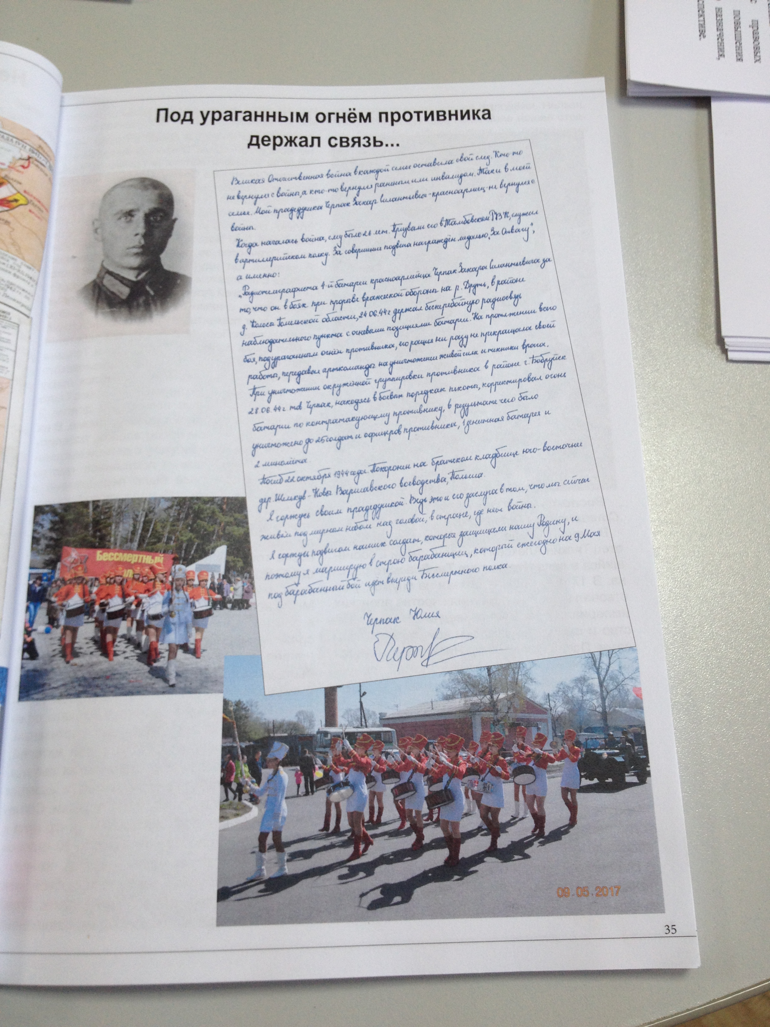 Сотрудничать с нами стали шесть администраций сельсоветов, два села. При взаимодействии с Администрацией района, общественной организацией «Женсовет села Толстовка Тамбовского района», краеведами трёх школ и двумя сельским библиотеками были собраны материалы для книги. Активное участие в сборе воспоминаний об участниках войны, трудового фронта приняли Совет Ассоциации, активные граждане района. Сделали записи в дневнике 127 человек, в том числе 67 школьников. Они рассказали в своих воспоминаниях о 185 фронтовиках и участниках трудового фронта. И даже при сокращении имеющихся данных все они уместились на 165 страницах дневника. В Дневник вошли солдатские письма, письма детей, внуков, правнуков фронтовиков, сведения о ратных подвигах солдат, истории жизни. Книгу свою посвятили 160-летию образования Амурской области.