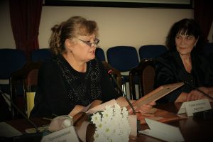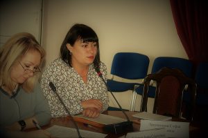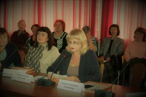 Заседание открыла председатель АРО СПР, руководитель проекта Самбур Е.П. В своем докладе она кратко обрисовала все основные вехи на пути осуществления идеи проекта, его географию, его цели и задачи, качественные результаты, поблагодарила партнеров проекта и его участников, представители которых присутствовали на заседании.
