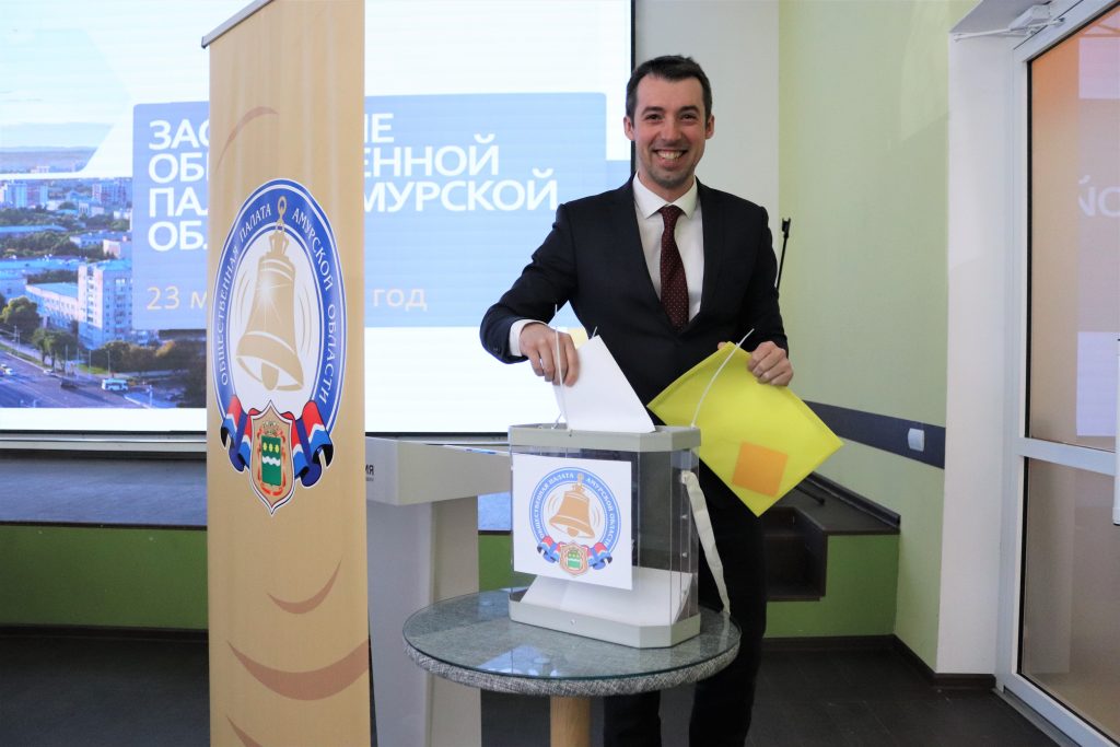 Еще одним важным вопросом заседания Общественной палаты Приамурья стало утверждение кандидатуры представителя в Общественную палату РФ от Амурской области. На голосование было выдвинуто 3 кандидатуры: Илларионов Геннадий Владимирович, Маркитан Юрий Васильевич, Самвелян Роман Робертович. Не обошлось без интриги – выбирали путем тайного голосования и голосовать пришлось в два тура. В итоге Роман Самвелян утвержден кандидатом от амурского региона в Общественную палату РФ.