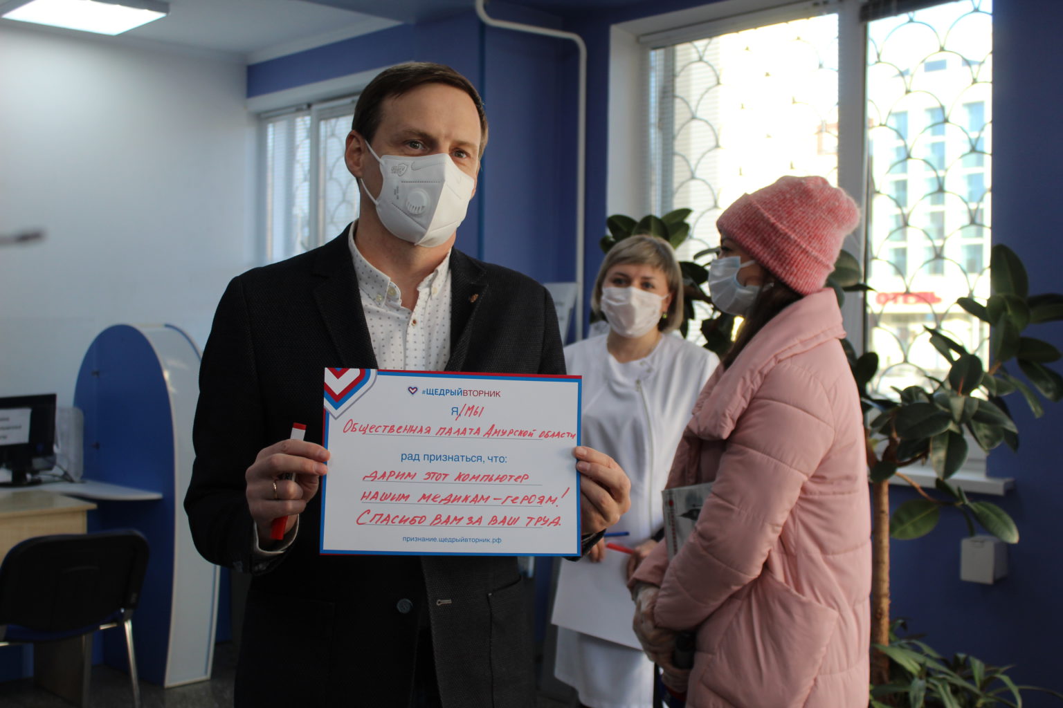 25 ноября 2020 года члены Общественной палаты Амурской области передали новый мощный компьютер и клавиатуру в ГАУЗ АО «Городская поликлиника №3».