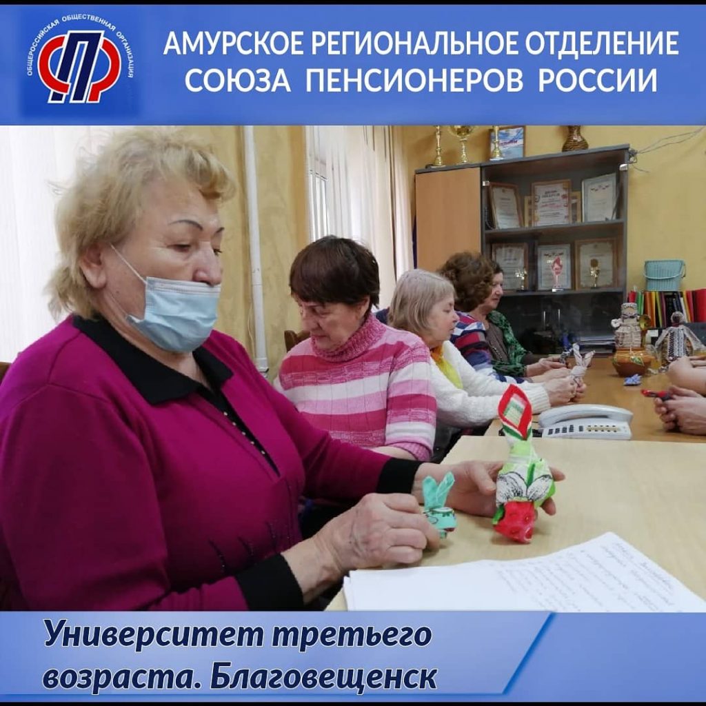 23 марта в МО СПР г. Благовещенска прошло очередное факультативное занятие в рамках «Университета третьего поколения «, провела его народный мастер декоративно — прикладного искусства Оксана Викторовна Головачёва. Мастер-класс по народной кукле и практическая работа получились интересными, увлекательными и познавательными.