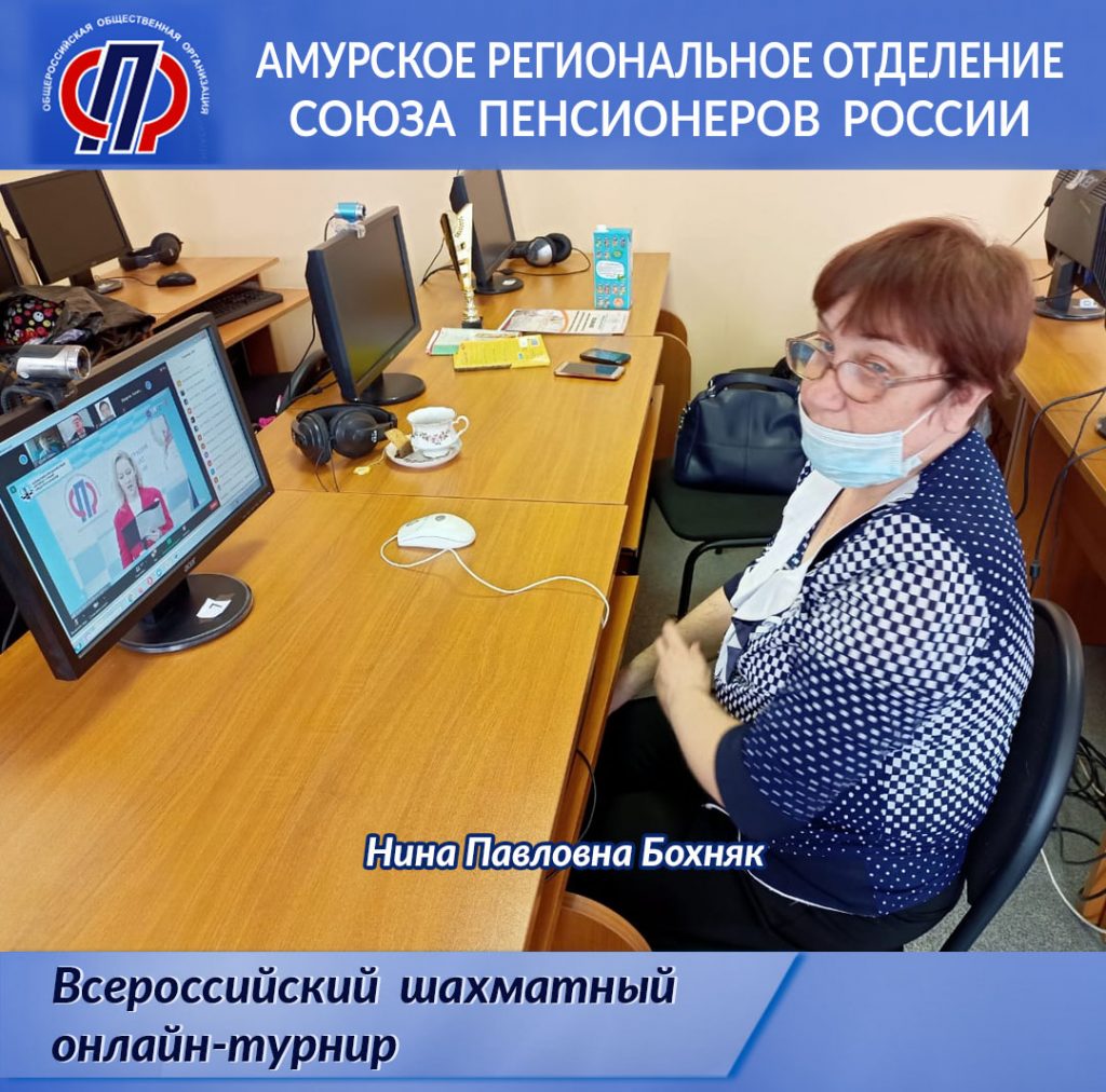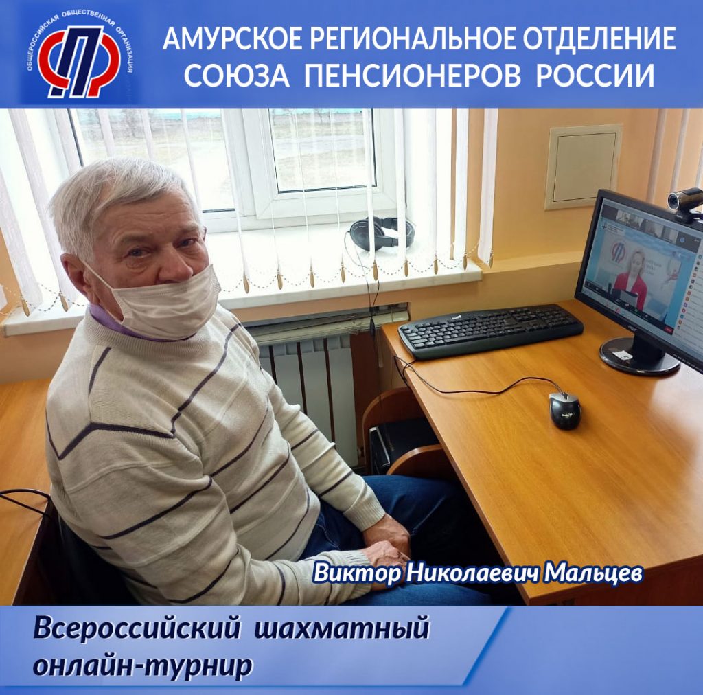 Готовясь ко второму (федеральному) этапу соревнований, Амурское региональное отделение «Союз пенсионеров России» при поддержке Министерства по физической культуре и спорту Амурской области совместно с РОСО «Федерация шахмат и шашек Амурской области» в феврале провели первый открытый онлайн-турнир Амурской области по быстрым шахматам среди пенсионеров «Амурская ладья», в котором состязались 23 человека.