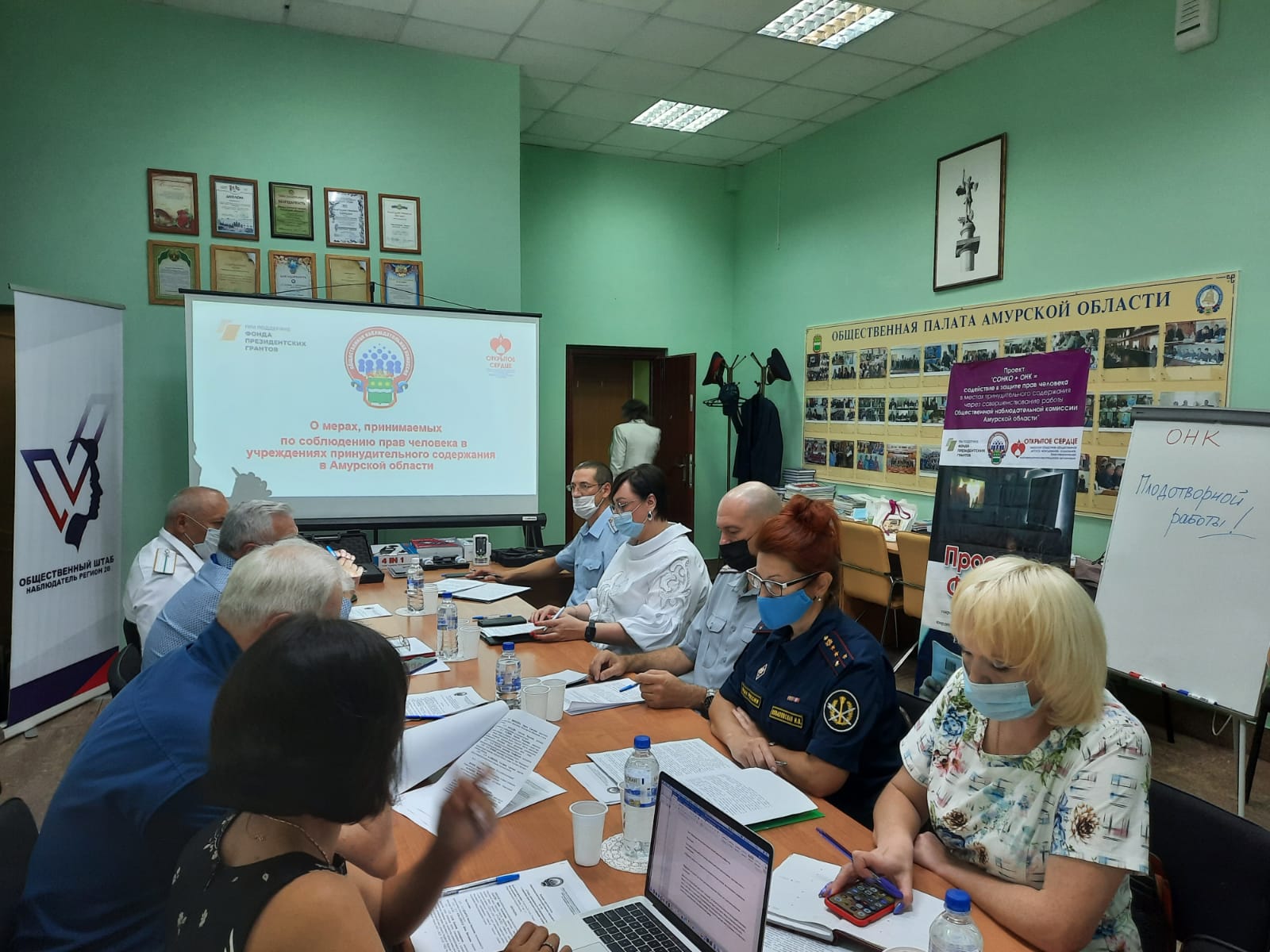 Общественная наблюдательная комиссия (ОНК) Амурской области организовала «круглый стол» на тему «О мерах, принимаемых по соблюдению прав человека в учреждениях принудительного содержания Амурской области». В мероприятии приняли участие председатель и члены Общественной палаты Амурской области, представители УФСИН, УМВД, министерства образования и науки, уполномоченный по правам человека и уполномоченный по правам ребенка в Амурской области, общественных правозащитных организаций.