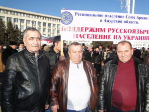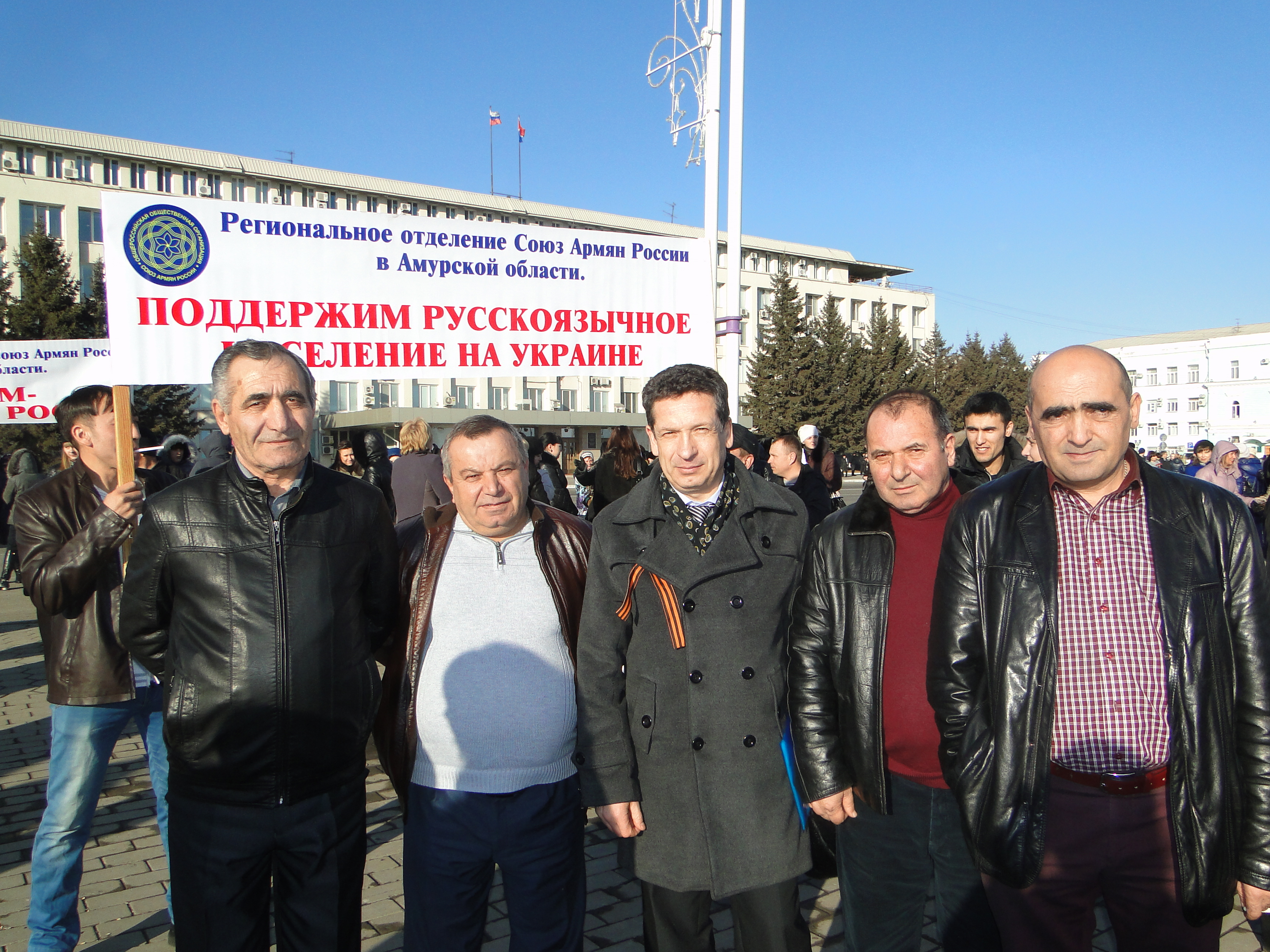 18 марта 2014 года прошёл митинг под лозунгом «В поддержку русскоязычного населения Украины». На площади Ленина собрались около 4 тысяч человек. Инициатором стало Амурское региональное отделение общероссийского общественного движения «НАРОДНЫЙ ФРОНТ «ЗА РОССИЮ». В митинге приняли участие члены Общественной палаты Амурской области, представители Правительства Амурской области, Законодательного Собрания Амурской области, Российского союза молодёжи, политических партий, вузов и другие неравнодушные граждане.