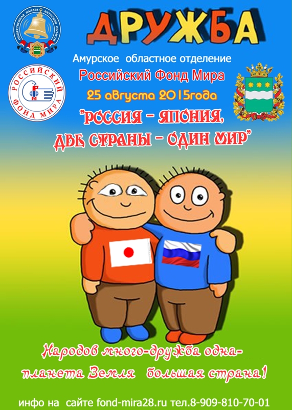 Амурское отделение Российского Фонда Мира поддержало преемственность и выразила готовность встретить гостей из Японии. В связи с этим разработан проект «РОССИЯ-ЯПОНИЯ — две страны один мир!».
